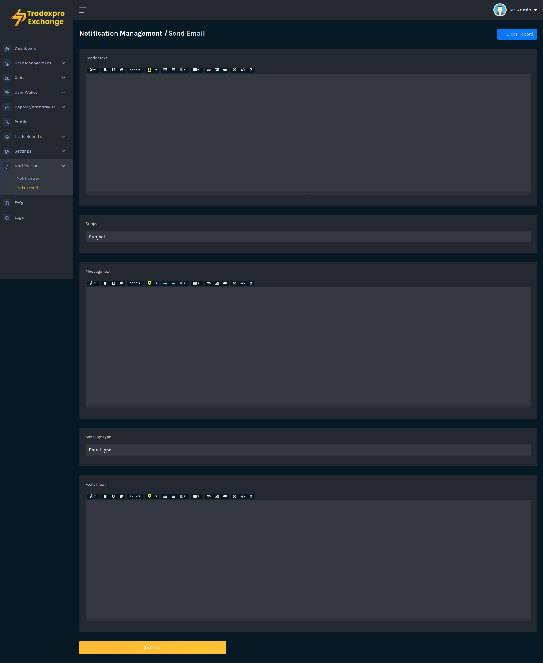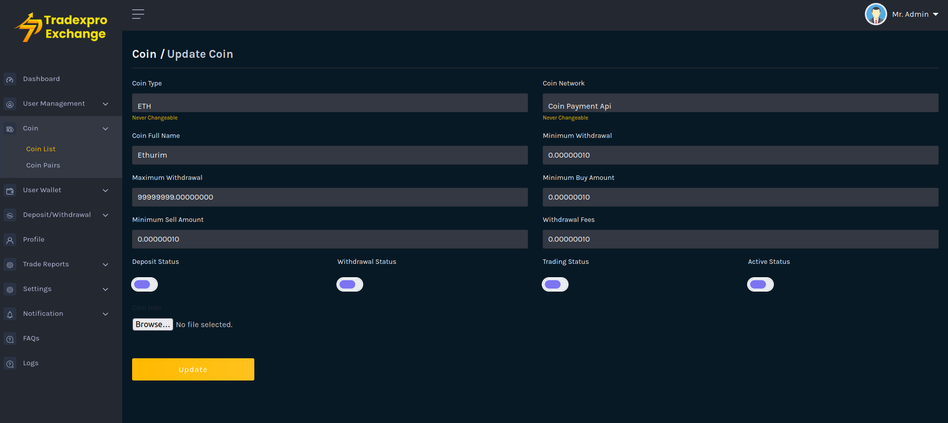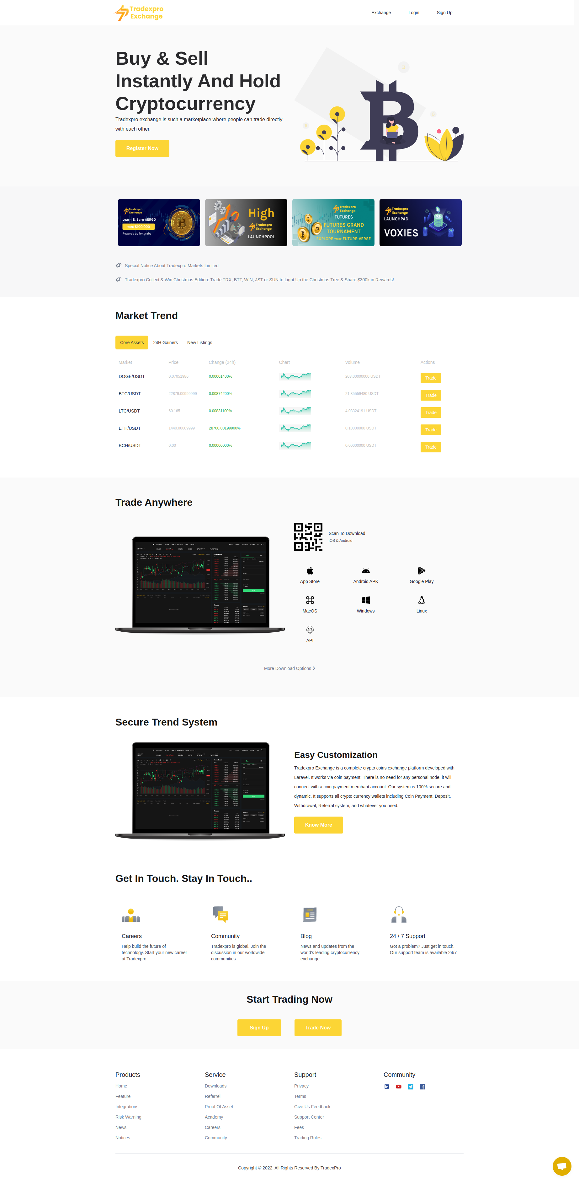 Again, thank you for purchasing Tradexpro exchange. If you need some help, or support please use email or contact form via codecanyon Profile site.