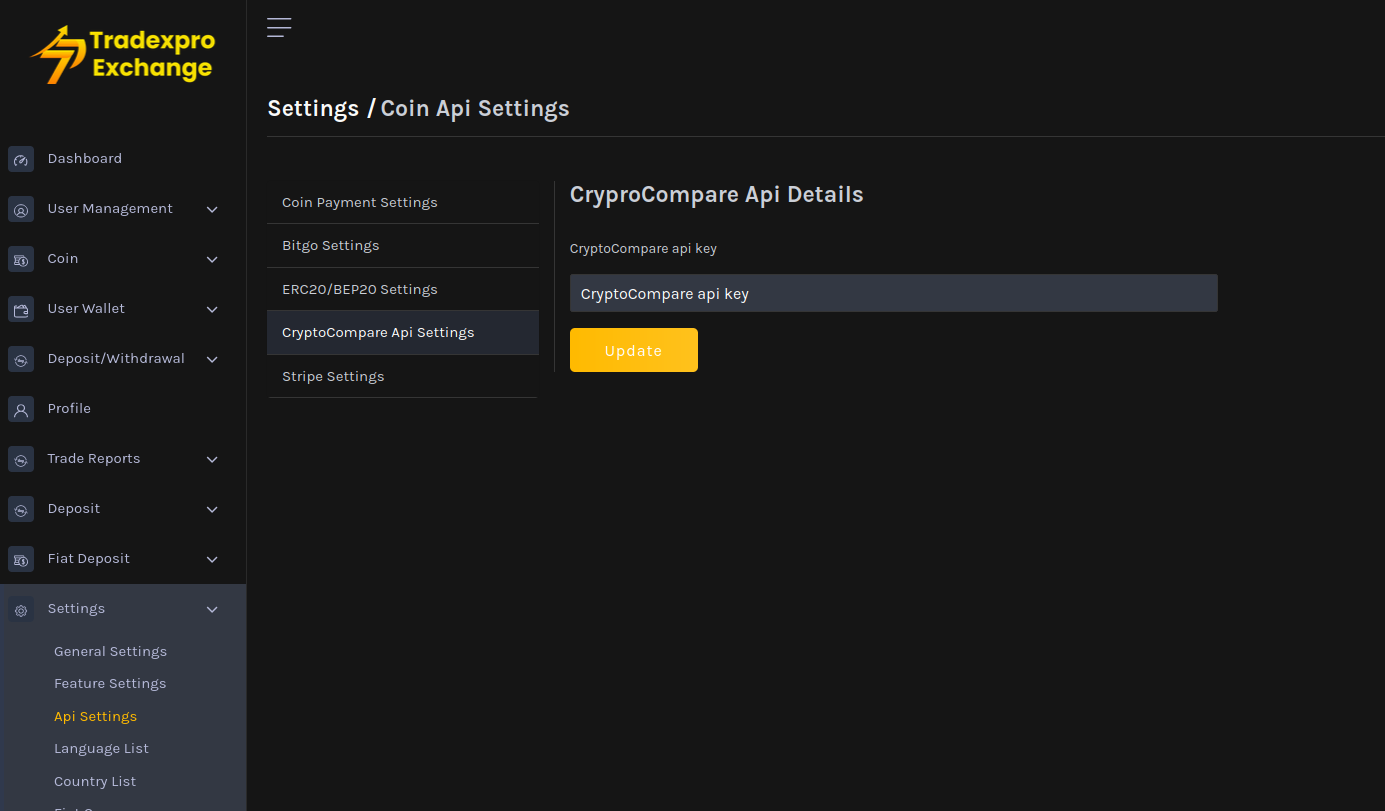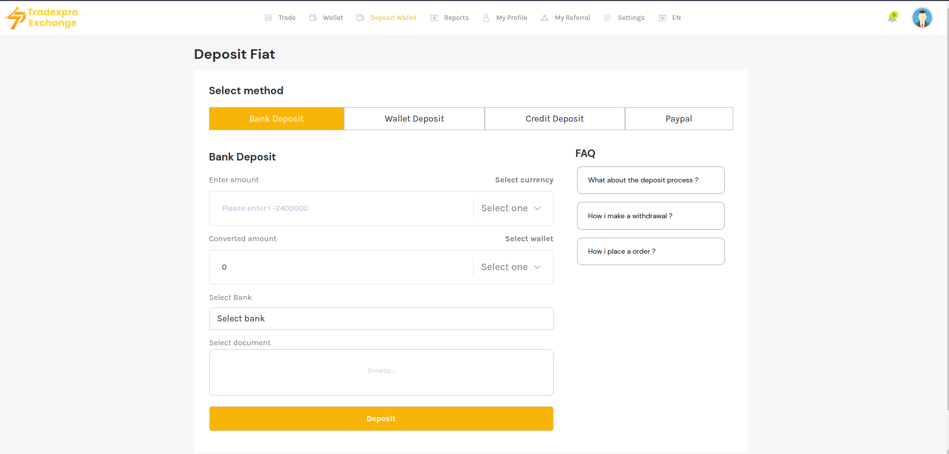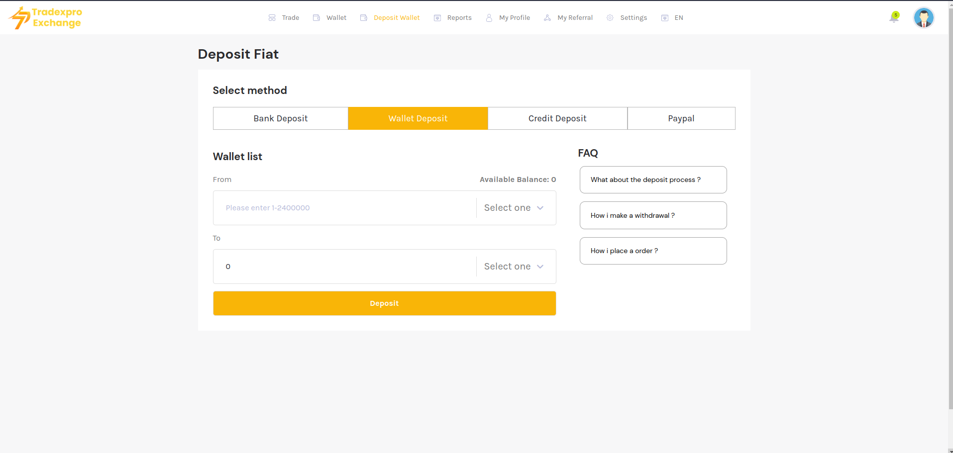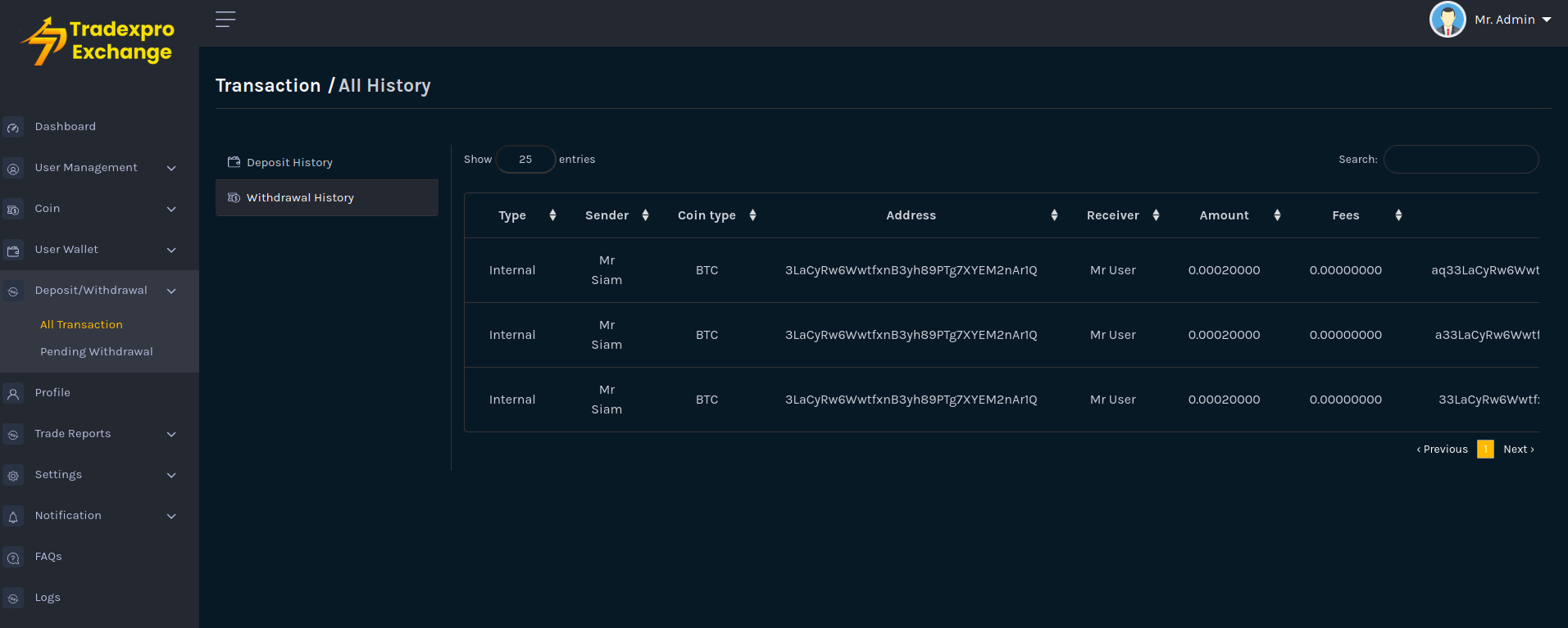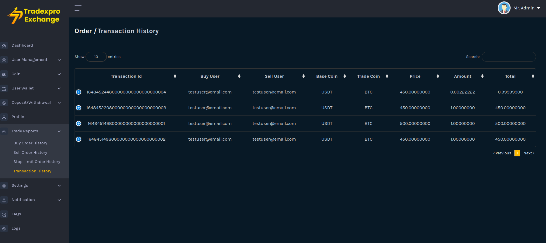 Tradexpro Exchange is a complete crypto coins exchange platform developed with Laravel and next js. It is the best choice to buy, sell or exchange any crypto coin that works via coin payment or bitcoin fork node. It will connect with a coin payment merchant account, or also connect with node. Our system is 100% secure and dynamic. It supports all cryptocurrency wallets including Coin Payment, Buy , Sell , Stop Limit, Deposit, Withdrawal, Referral system, and whatever you need. The most attractive feature of this platform is trading. In the trading system, you can place buy and sell orders according to your preferences of coin prices. Beside that, you can check your balance from wallet section. You can also check your buy-sell transaction status, deposit, withdrawal histories.