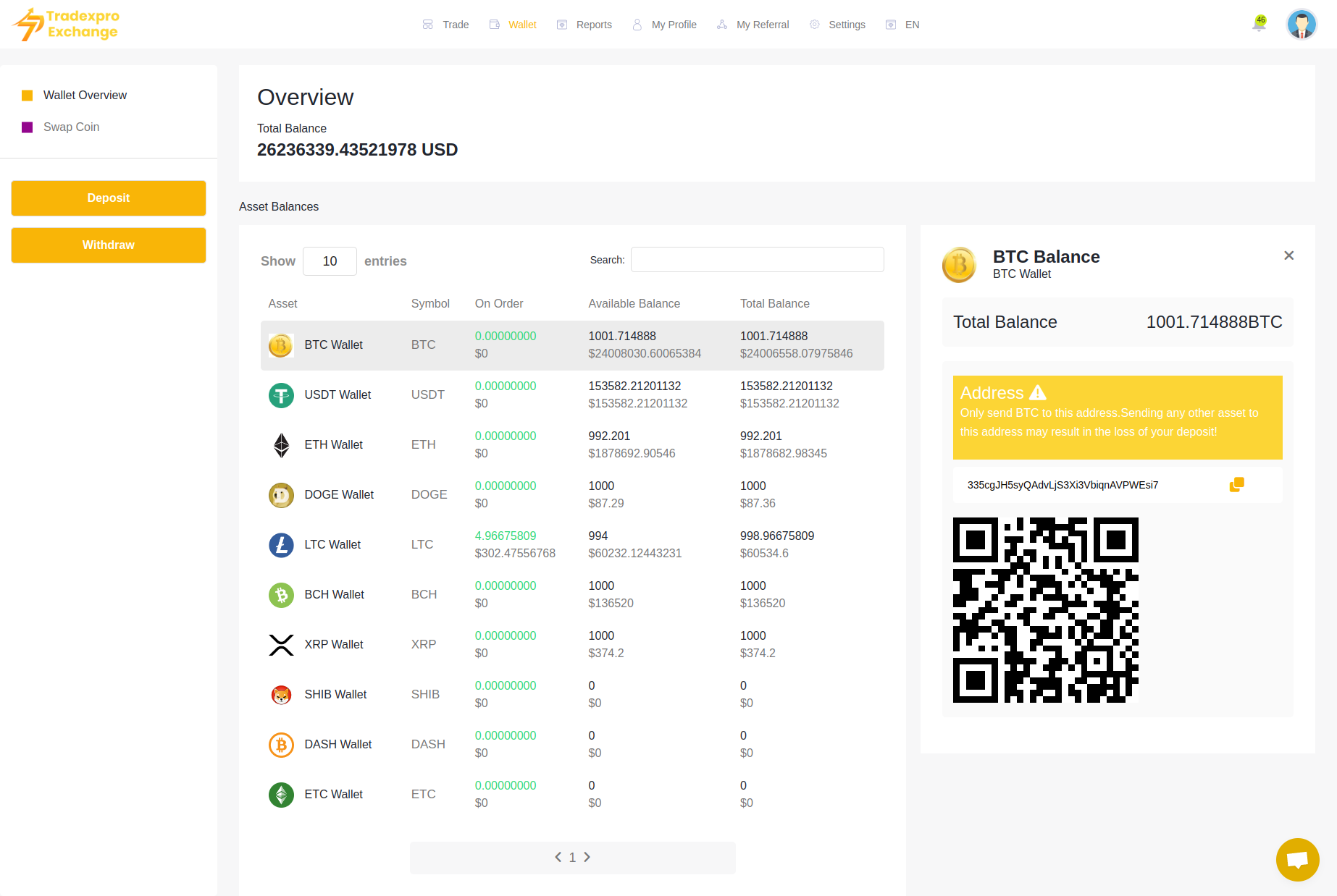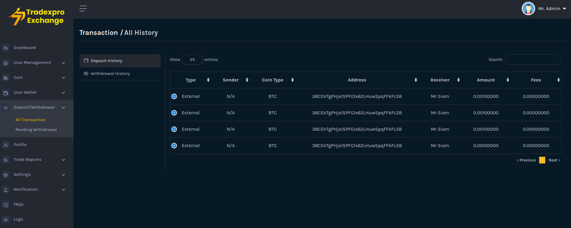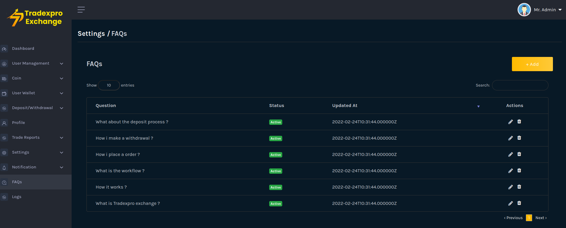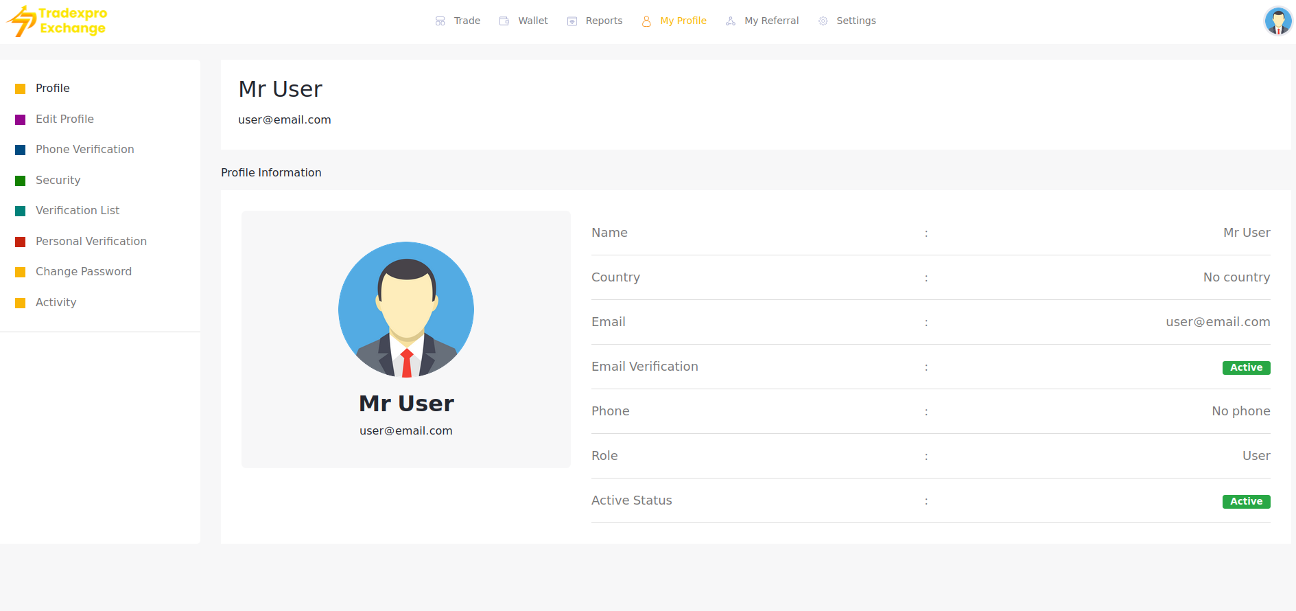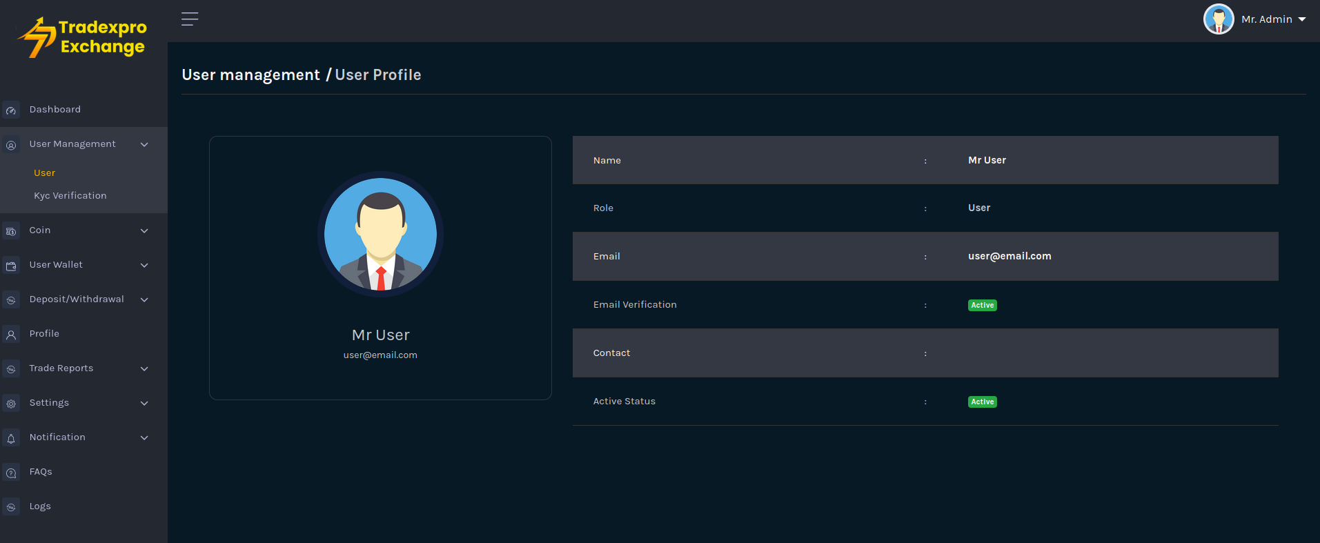 Tradexpro Exchange is a complete crypto coins exchange platform developed with Laravel and next js. It is the best choice to buy, sell or exchange any crypto coin that works via coin payment or bitcoin fork node. It will connect with a coin payment merchant account, or also connect with node. Our system is 100% secure and dynamic. It supports all cryptocurrency wallets including Coin Payment, Buy , Sell , Stop Limit, Deposit, Withdrawal, Referral system, and whatever you need. The most attractive feature of this platform is trading. In the trading system, you can place buy and sell orders according to your preferences of coin prices. Beside that, you can check your balance from wallet section. You can also check your buy-sell transaction status, deposit, withdrawal histories.