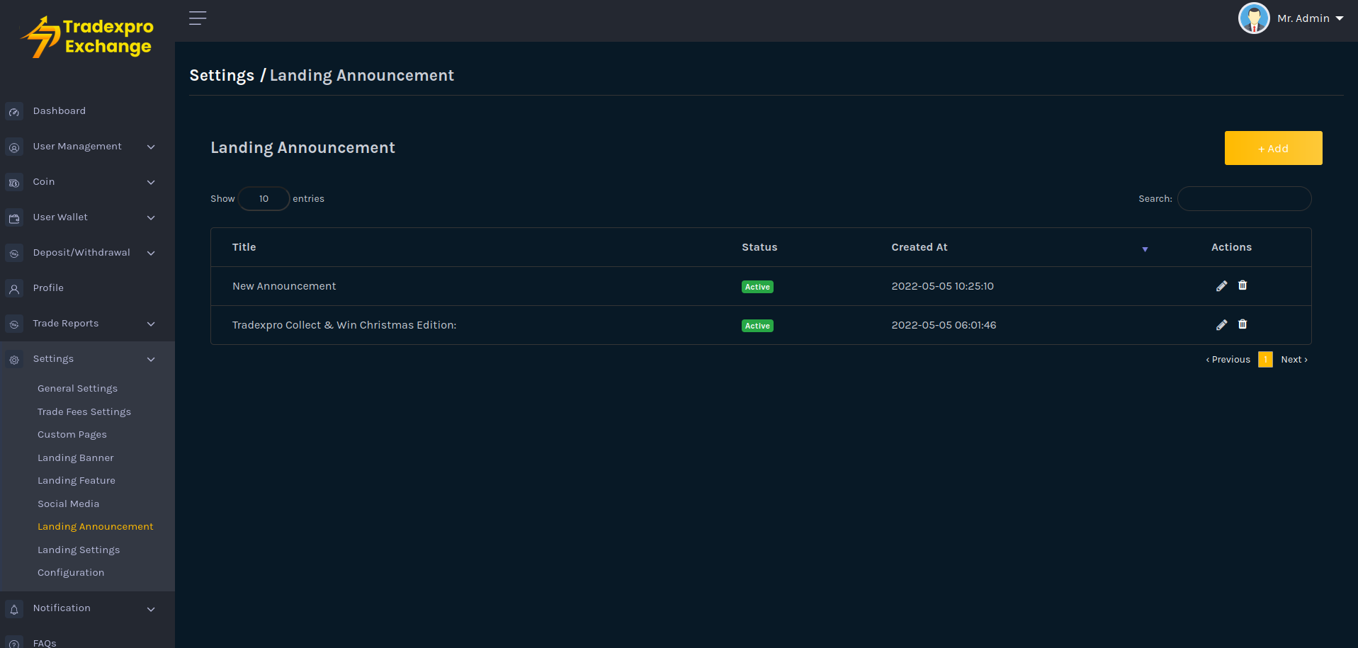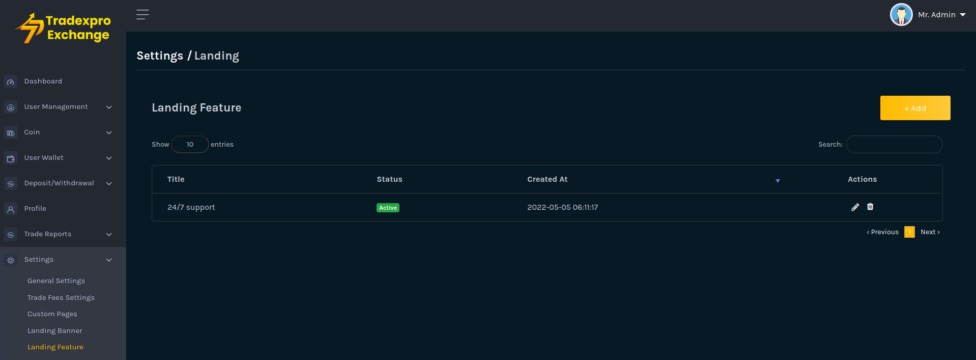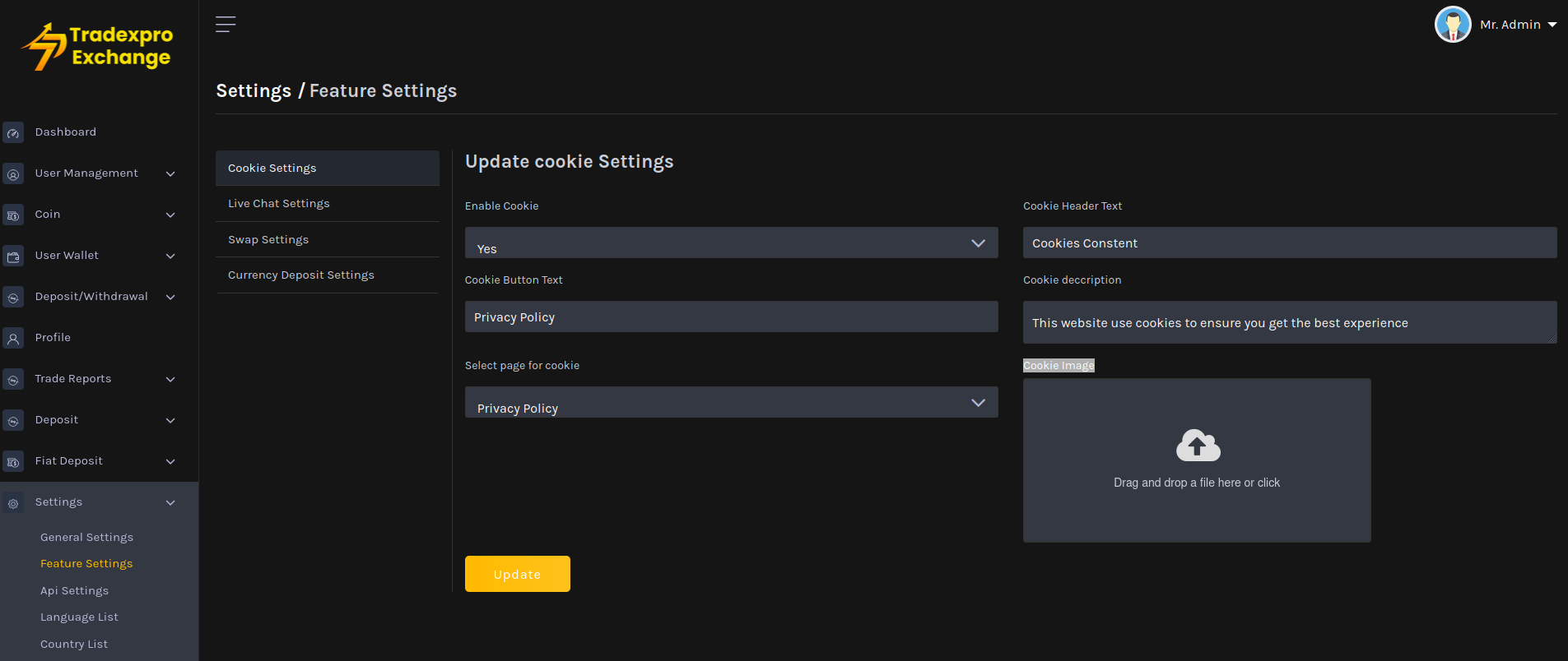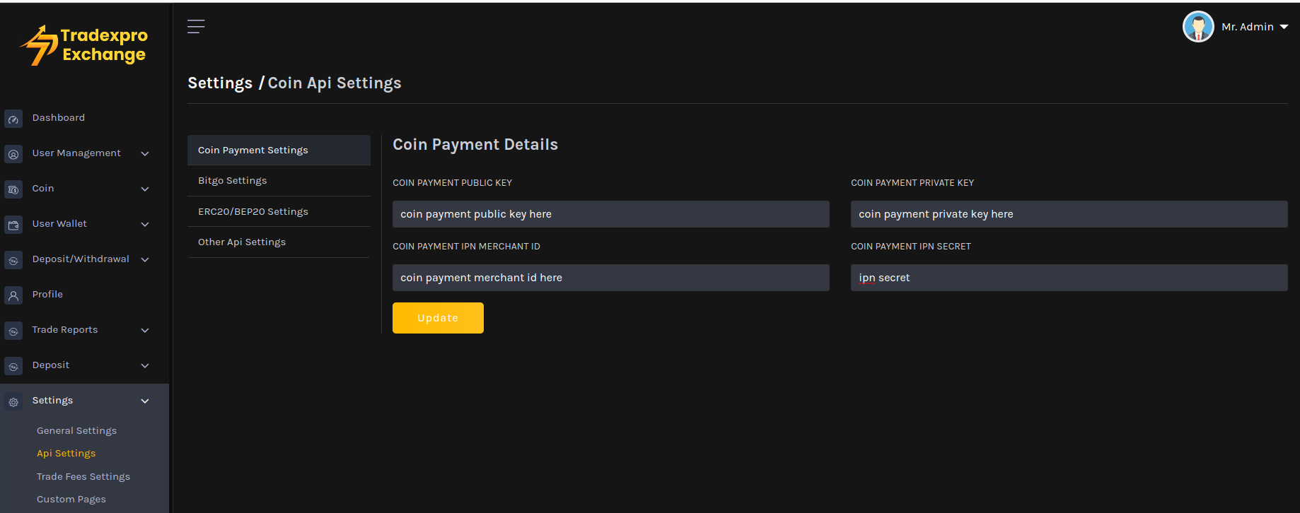 Tradexpro Exchange is a complete crypto coins exchange platform developed with Laravel and next js. It is the best choice to buy, sell or exchange any crypto coin that works via coin payment or bitcoin fork node. It will connect with a coin payment merchant account, or also connect with node. Our system is 100% secure and dynamic. It supports all cryptocurrency wallets including Coin Payment, Buy , Sell , Stop Limit, Deposit, Withdrawal, Referral system, and whatever you need. The most attractive feature of this platform is trading. In the trading system, you can place buy and sell orders according to your preferences of coin prices. Beside that, you can check your balance from wallet section. You can also check your buy-sell transaction status, deposit, withdrawal histories.