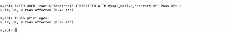ALTER USER 'root'@'localhost' IDENTIFIED WITH mysql_native_password BY 'myPassword';