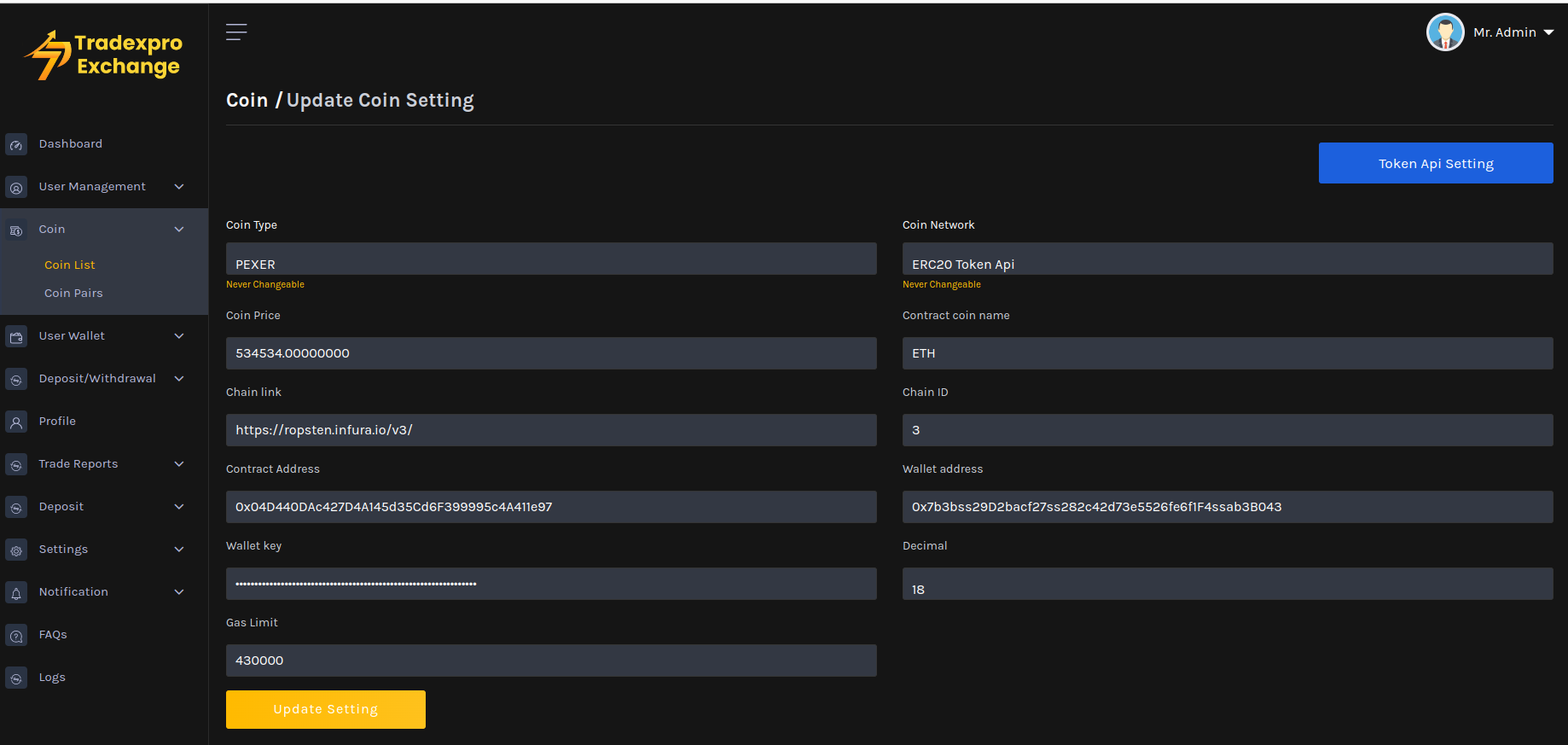 Again, thank you for purchasing Tradexpro exchange. If you need some help, or support please use email or contact form via codecanyon Profile site.