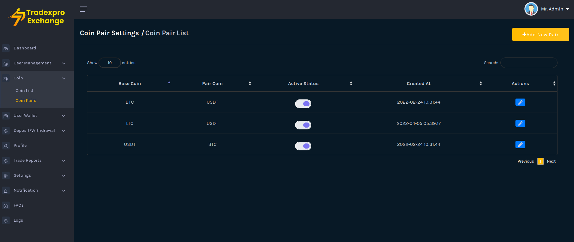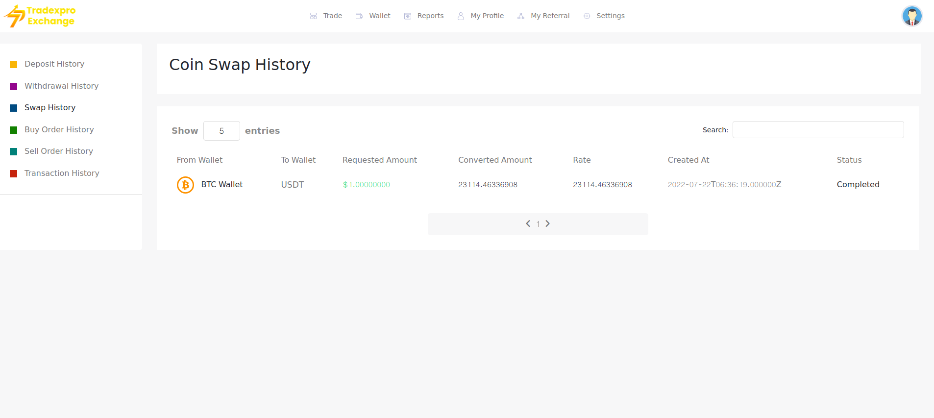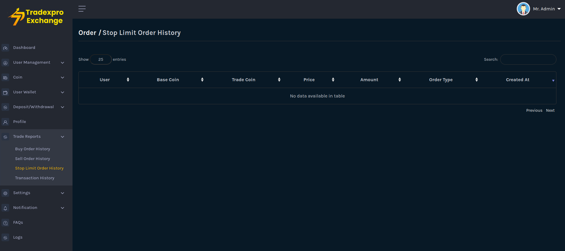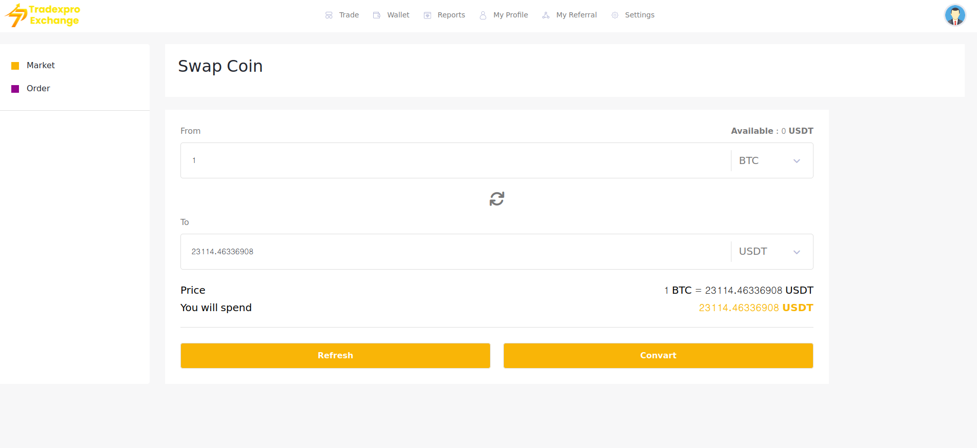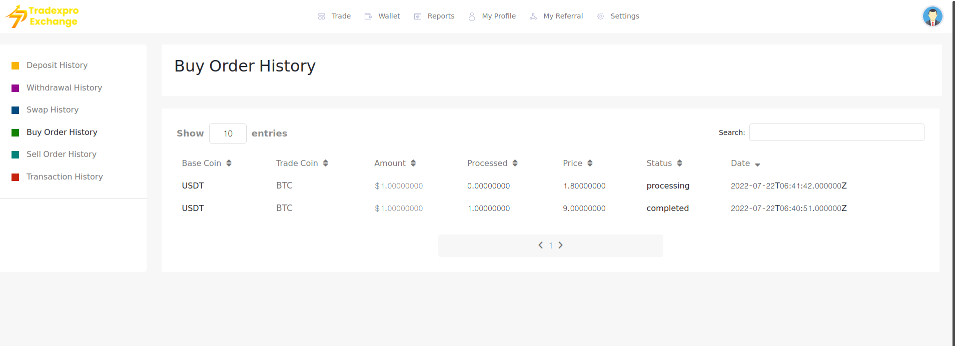 Tradexpro Exchange is a complete crypto coins exchange platform developed with Laravel and next js. It is the best choice to buy, sell or exchange any crypto coin that works via coin payment or bitcoin fork node. It will connect with a coin payment merchant account, or also connect with node. Our system is 100% secure and dynamic. It supports all cryptocurrency wallets including Coin Payment, Buy , Sell , Stop Limit, Deposit, Withdrawal, Referral system, and whatever you need. The most attractive feature of this platform is trading. In the trading system, you can place buy and sell orders according to your preferences of coin prices. Beside that, you can check your balance from wallet section. You can also check your buy-sell transaction status, deposit, withdrawal histories.
