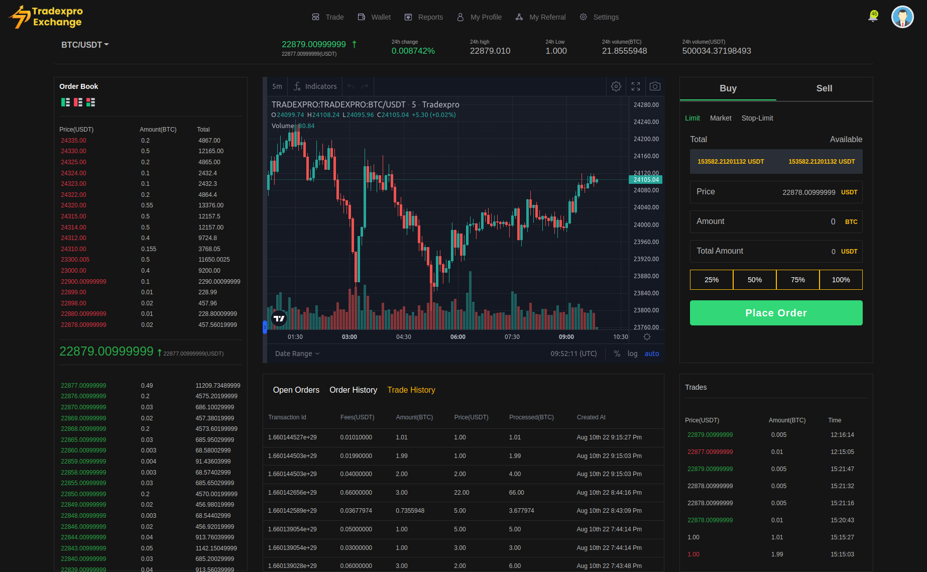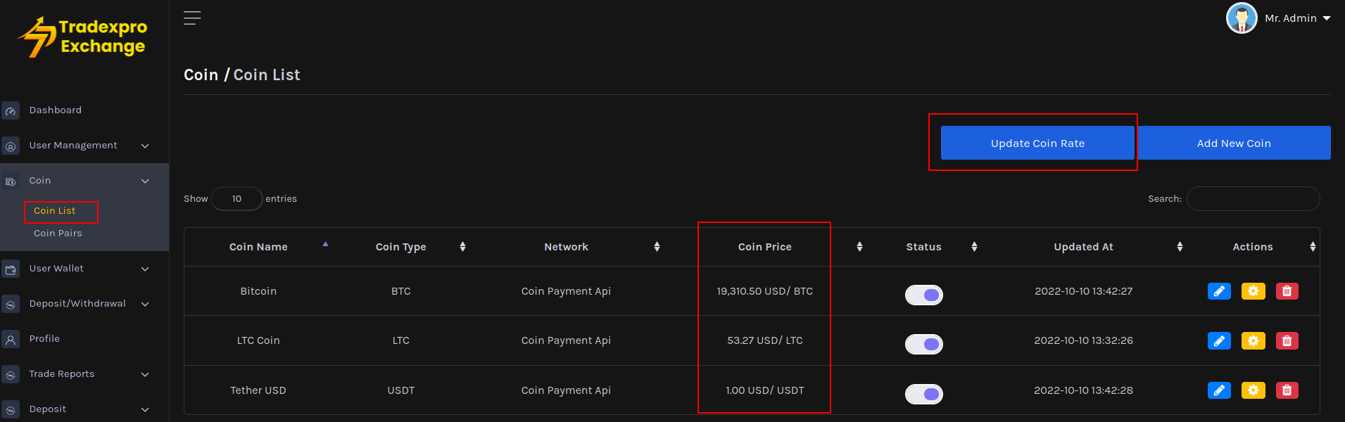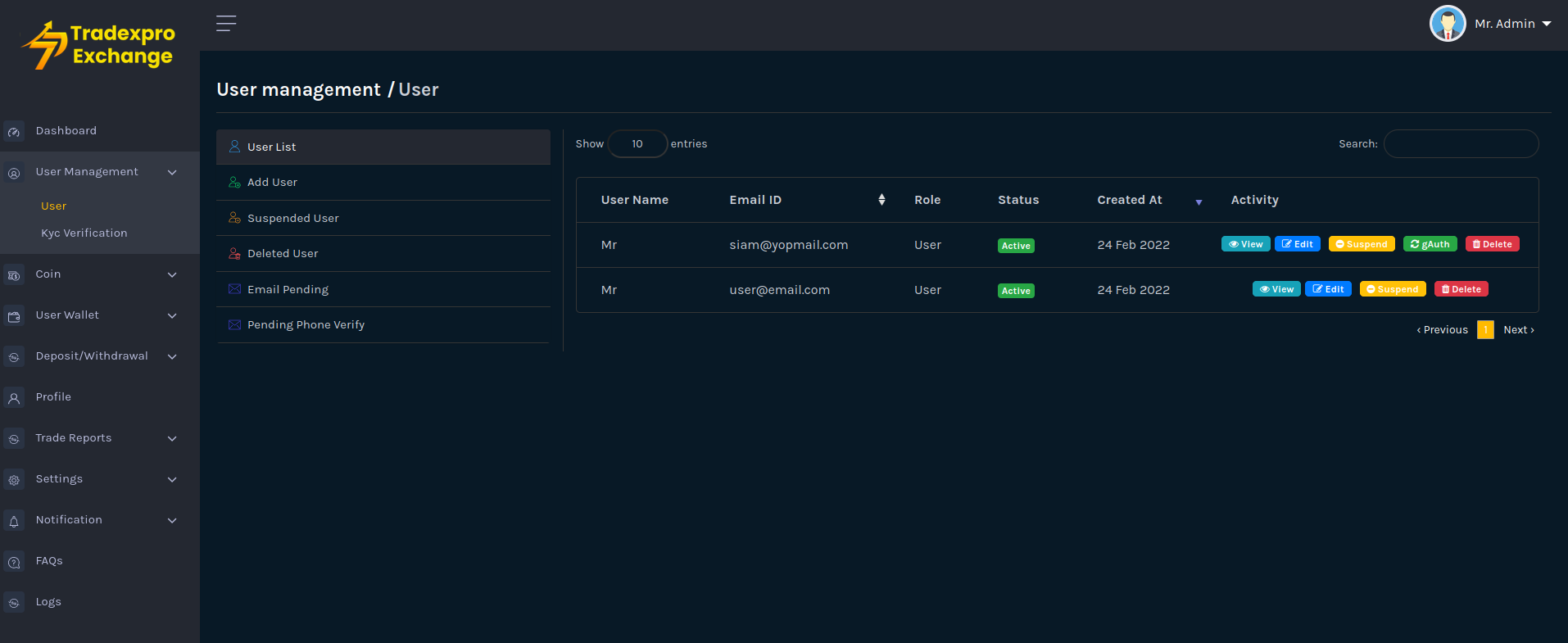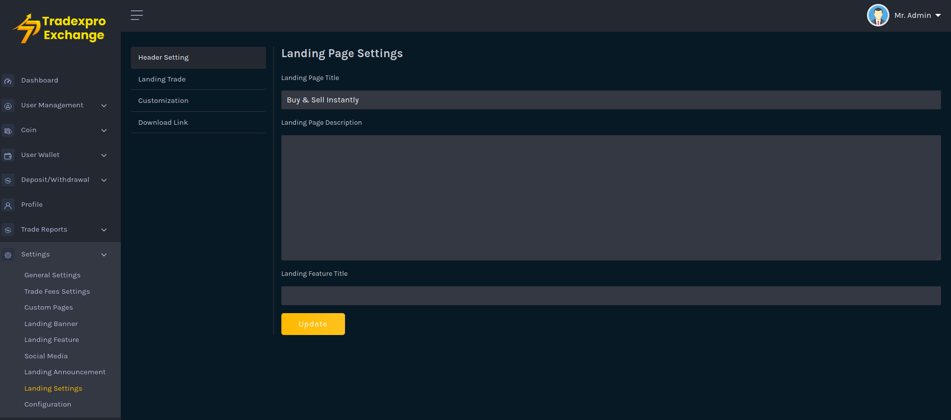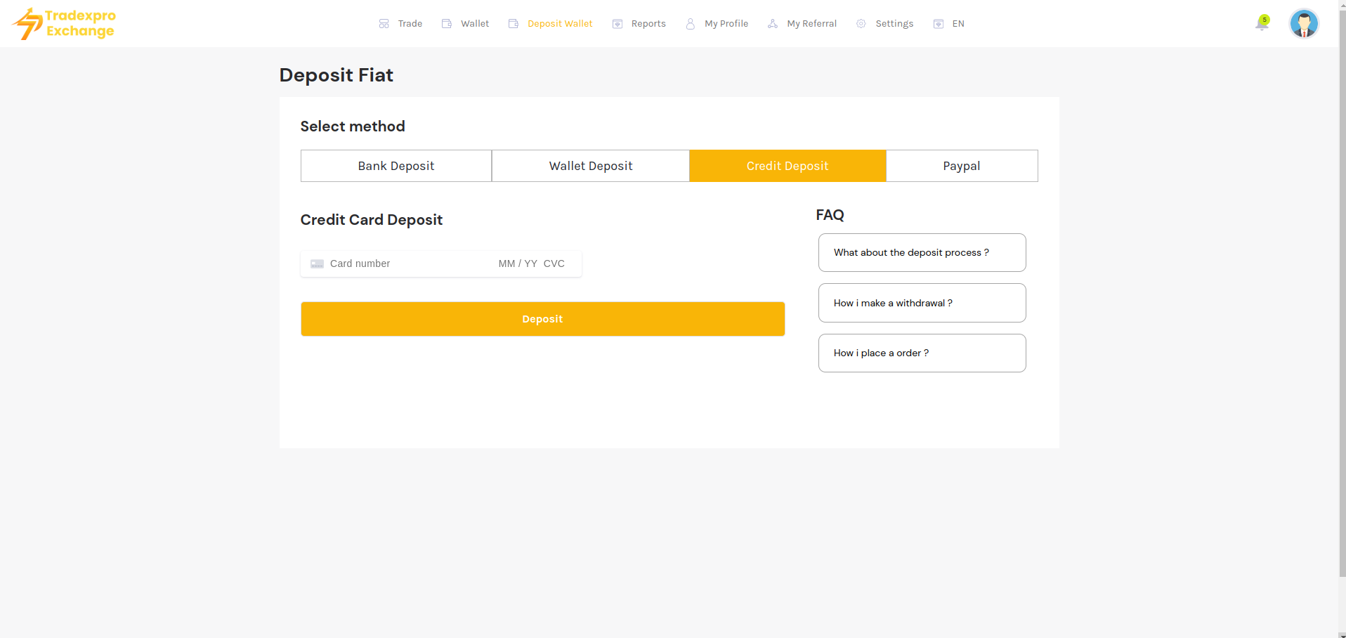 Tradexpro Exchange is a complete crypto coins exchange platform developed with Laravel and next js. It is the best choice to buy, sell or exchange any crypto coin that works via coin payment or bitcoin fork node. It will connect with a coin payment merchant account, or also connect with node. Our system is 100% secure and dynamic. It supports all cryptocurrency wallets including Coin Payment, Buy , Sell , Stop Limit, Deposit, Withdrawal, Referral system, and whatever you need. The most attractive feature of this platform is trading. In the trading system, you can place buy and sell orders according to your preferences of coin prices. Beside that, you can check your balance from wallet section. You can also check your buy-sell transaction status, deposit, withdrawal histories.