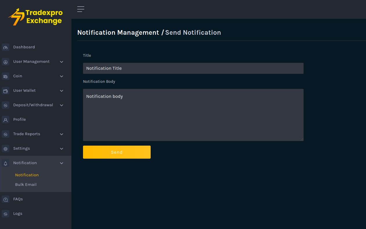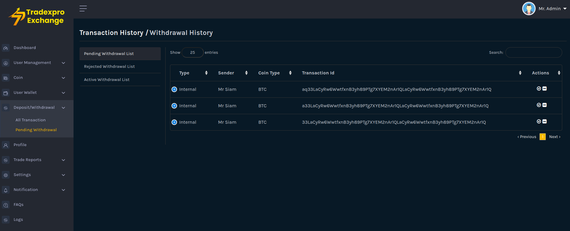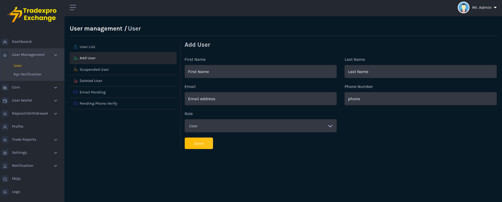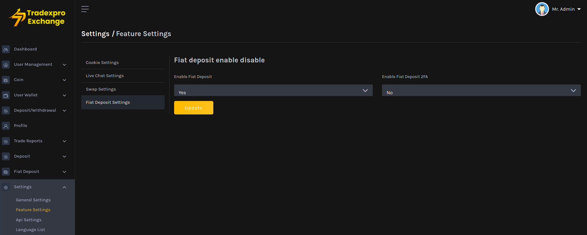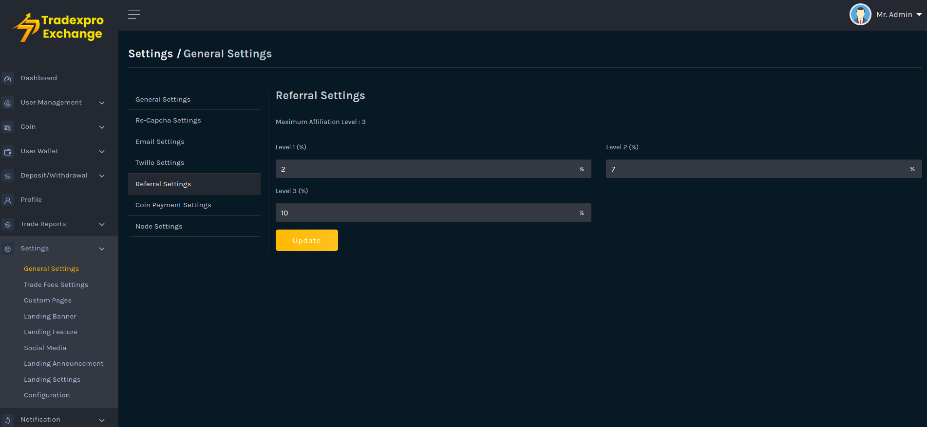 Tradexpro Exchange is a complete crypto coins exchange platform developed with Laravel and next js. It is the best choice to buy, sell or exchange any crypto coin that works via coin payment or bitcoin fork node. It will connect with a coin payment merchant account, or also connect with node. Our system is 100% secure and dynamic. It supports all cryptocurrency wallets including Coin Payment, Buy , Sell , Stop Limit, Deposit, Withdrawal, Referral system, and whatever you need. The most attractive feature of this platform is trading. In the trading system, you can place buy and sell orders according to your preferences of coin prices. Beside that, you can check your balance from wallet section. You can also check your buy-sell transaction status, deposit, withdrawal histories.